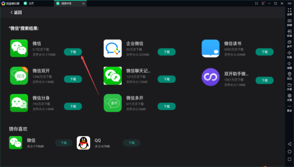 首先,要遗憾的告诉大家,逍遥模拟器目前不能下载华为应用市场。如果你想要玩手机上的游戏或者是软件的话,我们是可以直接在逍遥模拟器的逍遥市场中,直接进行搜索并下载。
