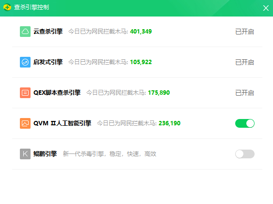 3、QEX脚本查杀引擎,该引擎主要是铲除电脑中的恶意脚本,从而给电脑安全的环境。