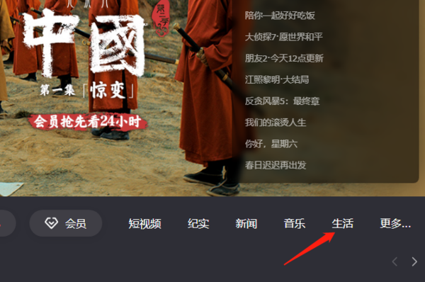 在芒果TV中,我们也可以在首页中,先找到“生活”频道,并点击进入。