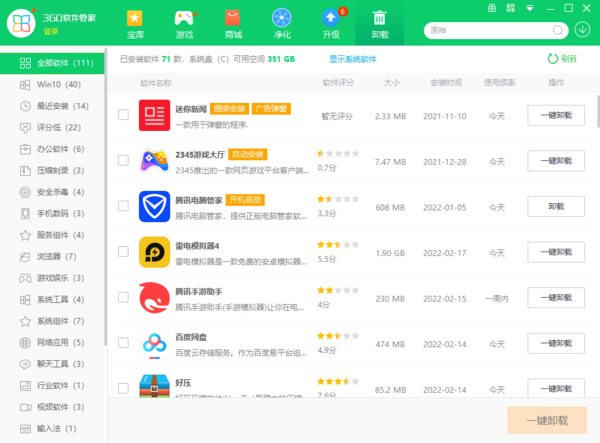 360软件管家的净化功能怎么用