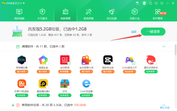 最后将360安全卫士扫描出来的垃圾全部进行清理即可。