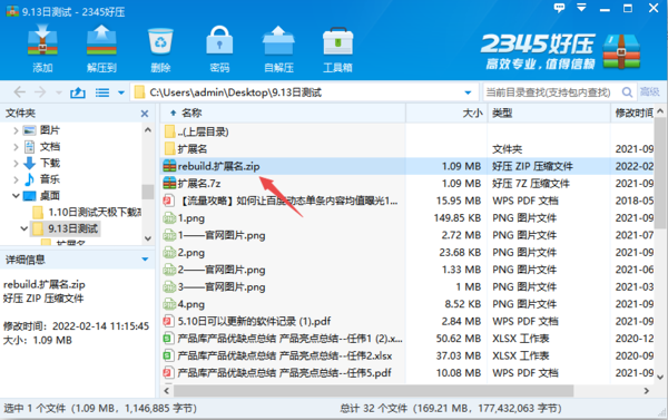 4.我们等待压缩包文件修复完成即可,文件修复完成后,回到2345好压的界面中,我们会看到一个【rebuild】的文件,这个就是修复后的文件了。