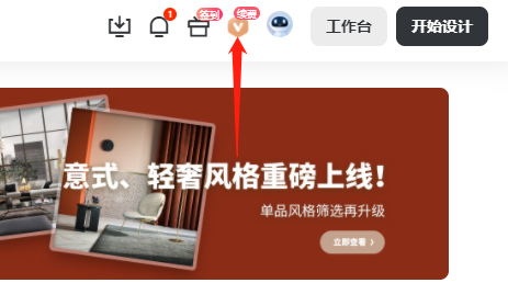 我们需要登录刚注册好的美间账号,登录之后,点击主界面右上方的“会员”图标,借此跳转到会员界面(隶属于个人资料界面)。然后在界面的右侧可以看到与红包非常相似的图标,并且写着“新手礼包”(已经领取新手礼包的,会变成“回归礼包”)。点击即可进入礼包领取界面。