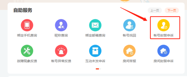 首先,我们要找到客服中心,在客服中心的首页的“自助服务”板块中找到“账号封禁申诉”并点击,进入到申诉详情页面。
