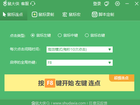随着时光齿轮的推动与技术的发展,网购、带货、抢货已经成了互联网的热门,广大群众也逐渐了解并加入带货与抢货的行列;而在一般情况下,抢货这场“战争”是激烈的,大部分朋友在此也是“一无所获”,但如果有了鼠大侠鼠标连点器,你点一下顶人家点十下,那岂不是在抢货的过程中“横扫千军”了?