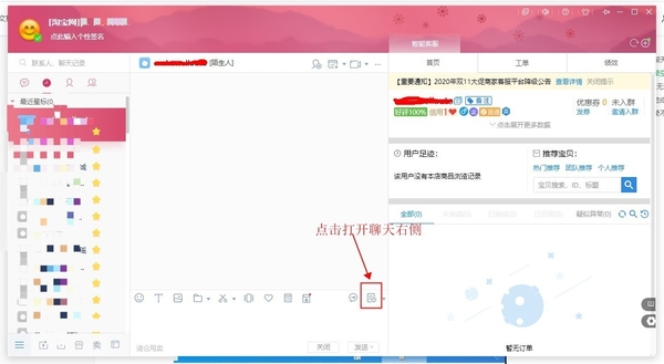 1、首先我们要检查一下软件聊天窗口的右侧有没有出现空白,如果出现了空白,连一些按键都没有的话,我们就重启千牛工作台。