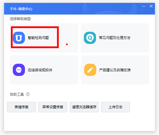 解决方法1:首先我们需要确认一下当前登录的千牛站点是否和我们自己的店铺是对应的,这里给大家举个例子,假设我们的店铺是在1688平台开设的,那么客服发来的消息就发送到了我们在1688平台的帐号中,这时候如果登录了淘宝帐号消息肯定就接收不到了。所以我们可以通过“千牛帮助与反馈”,然后点击“智能检测”来确认账号登录的是否正确。