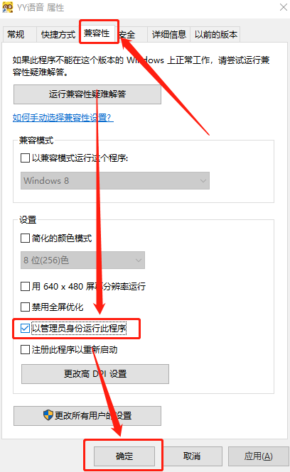 1、尝试“以管理员身份运行”,在每次启动yy语音之前度在图标上右键选择“以管理员身份运行”即可。如果不想每次都重复这个步骤,我们还可以使用鼠标右键点击yy语音,选择属性,然后找到兼容性,勾选“以管理员身份运行此程序”,最后点击“应用”,然后我们再次尝试开启yy语音使用,这个问题就解决了。