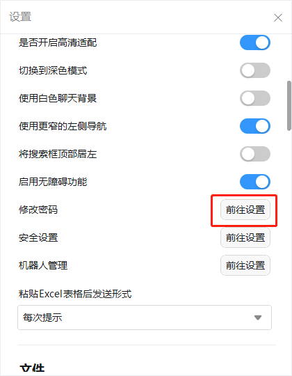 点开“设置”面板后,拉到下面找到修改密码项,单击“前往设置”,修改完成后选择“确定”就可以了。
