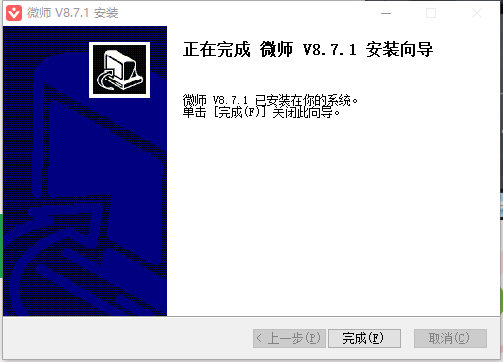 首先我们打开下载到电脑中的微师安装程序,然后点击下一步,勾选同意条款事项后,按照步骤进行安装,安装进度完成后就可以开始使用了。