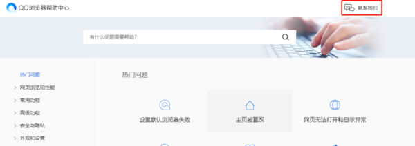5、如果还是无法解决qq浏览器崩溃问题,可以在qq浏览器帮助中心页面中找到“联系我们”,然后提交遇到的问题,等待专业人士的技术支持。