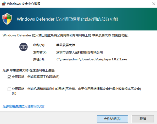 3、电脑中的防火墙拦截了苹果录屏大师的访问功能,可以先关闭电脑中的防火墙以及杀毒软件,再重新启动软件。
