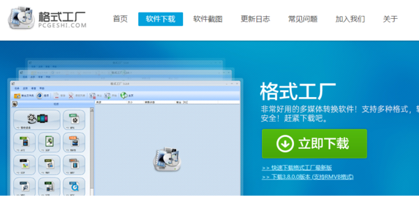 2、官网下载。格式工厂这款软件虽然也是款老软件,但是它和其他的一些老软件不一样,格式工厂的官网还是存在的,我们可以在官网上下载格式工厂。而且格式工厂的下载入口就在官网主页的最显眼处,我们进入官网就可以看到,点击“立即下载”就可以开始下载了。