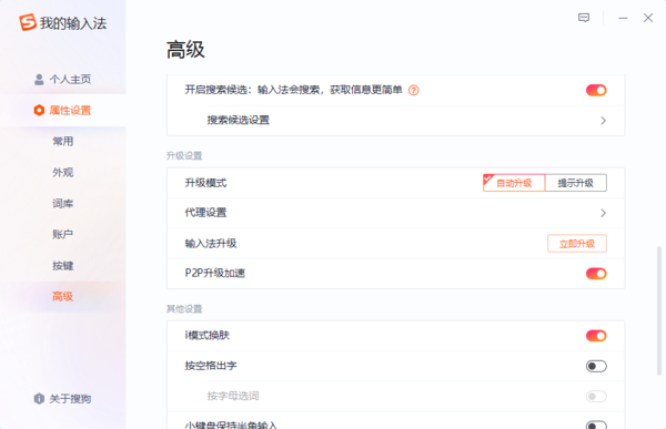 方案三:我们可以在设置里关掉一些自动更新的选项,在保证搜狗拼音输入法能正常使用的前提下“轻装上阵”。