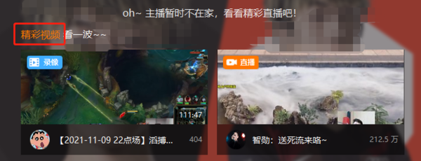 还是在画面的位置,有标黄的“精彩视频”四个字,点击后跳转到该主播的个人主页。