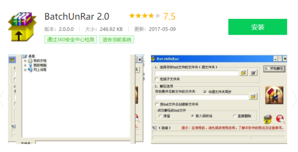 360软件管家中评分高的压缩工具?BatchUnRar?2.0