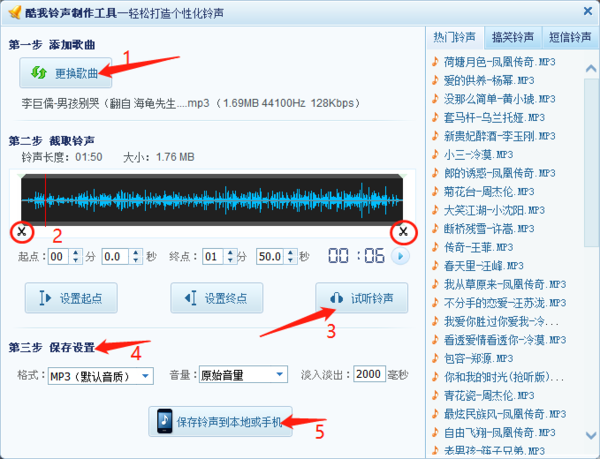 我们制作完成之后,可以用来当自己的手机铃声,属实个性且酷炫。此外,在剪切界面的右边,还有一些热门铃声,如果有比较喜欢的,我们也可以将它们带走哦~