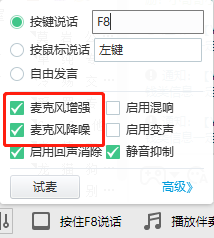 2、在出现的调音台界面中,勾选麦克风增强项与麦克风降噪项即可完成设置。