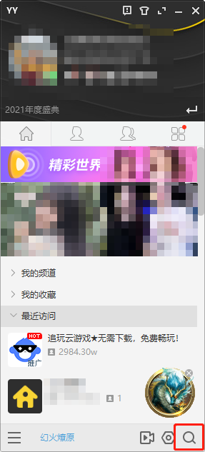 2、在框中输入想要进入的YY频道号或YY频道名后,点击位于右边的绿色“查找”键。