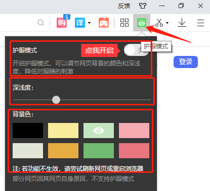 在浏览器UI右上角,我们可以看到【眼睛】按钮,点击即可进行护眼模式设置。