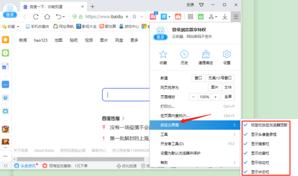 2345加速浏览器自定义界面功能在哪
