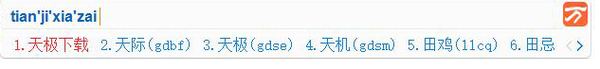 2、直接输入想要输入词语的拼音,这里我们以“财神爷站”为例,输入“tian?ji?xia?zai”,按下空格选中,即可完成拼音的输入。