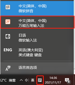 1、点击位于显示器“时间”左边的输入法框,切换至万能五笔输入法,或是同时按下键盘中的“shift”键和“Ctrl”键也可切换输入法。