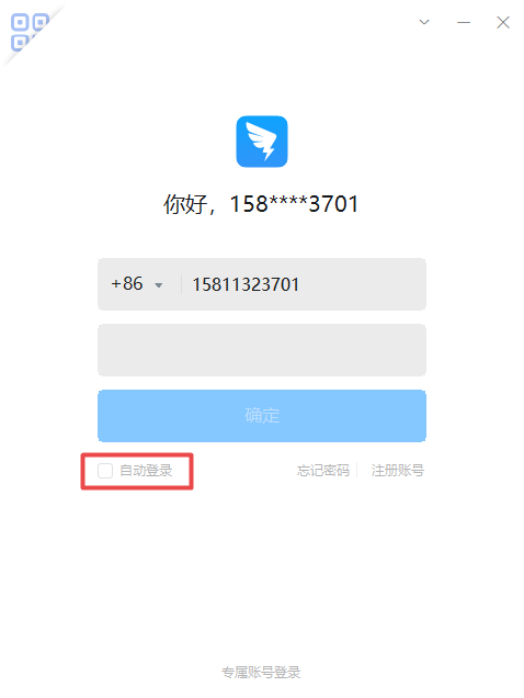 1.启动电脑上的钉钉软件,然后在软件登录的主界面当中,我们将【自动登录】选项进行取消勾选。