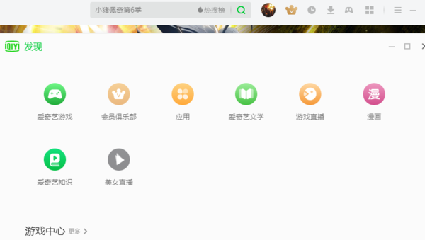 我们打开爱奇艺,来到主界面后,可以看到【游戏区】按钮右侧有个按钮,它就是爱奇艺的【发现区】,我们在这里可以发现处影视以外的内容、如游戏、小说、漫画等,可以在用户使用爱奇艺看剧的间隙,了解一些其他内容。
