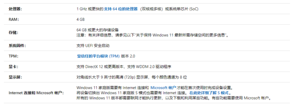 随着时间的推移,对于更新可能会有增加的要求,以及在操作系统内开启特定功能的要求。因此除了上面列出的最低要求外,如果需要使用Windows11系统的一些特定功能,还需要额外的硬件支持,详细的要求可以到微软官网Windows11页面进行了解。