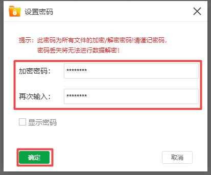第四步,接着软件就会弹出【设置密码】的窗口,此时我们设置好文件夹的加密密码,然后点击【确定】按钮。