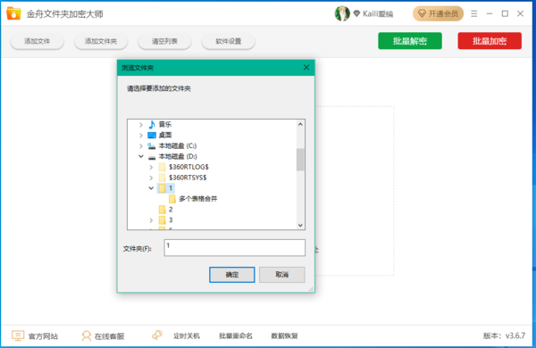 第二步,接着系统就会弹出文件夹的选择窗口,此时我们将需要进行加密的文件夹添加进来。