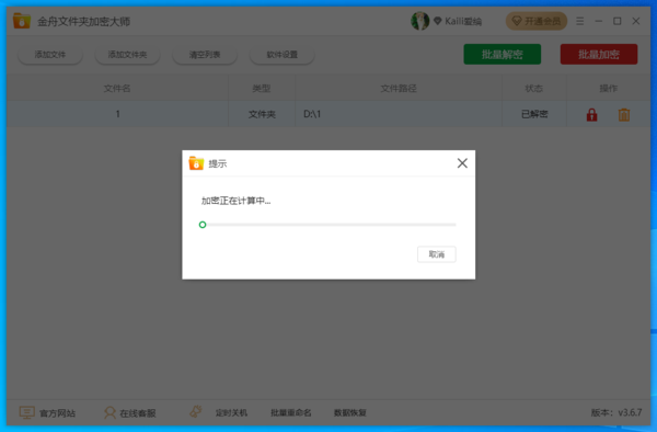 第五步,然后软件就会对文件夹进行加密操作,此时我们稍等一会儿。