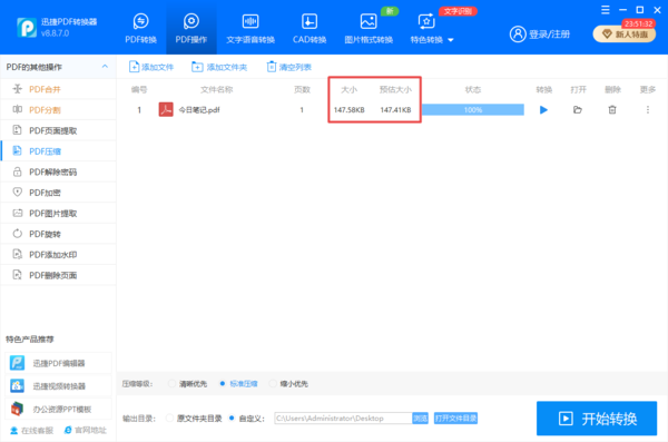 以上,就是小编为大家总结的关于使用迅捷PDF转换器来压缩PDF文件大小的方法了,如果你在日常的工作过程当中,也有这样的需求的话,那么不妨赶快试着使用迅捷PDF转换器来学习一下这项技巧,这样日后的工作再遇到这样的需求时,我们便能够以非常轻松的姿态去完成它了。