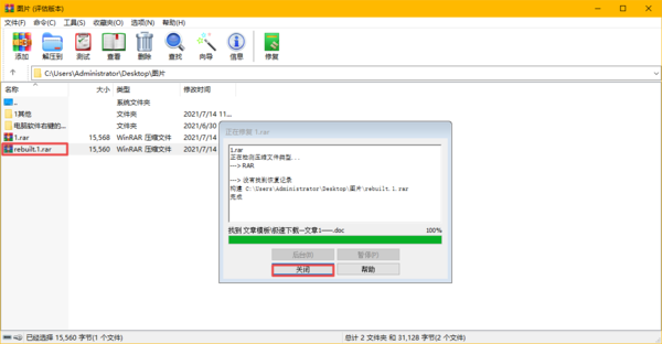 第四步,已损坏的压缩文件修复完成后,我们就可以在被修复的压缩文件保存的文件夹中,看到一个新增的名为【rebuilt.1.rar】或【rebuilt.1.zip】的压缩文件了,它就是WinRAR为你修复好的压缩文件了。