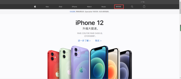 第五步,在电脑的浏览器中打开苹果手机的官网,然后找到【技术支持】,并点击进入。