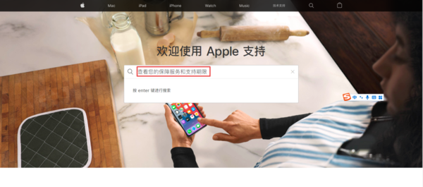 第六步,进入到技术支持界面中,在搜索栏中输入【查看您的保修服务和支持期限】,然后在找到的结果中,点击进入。