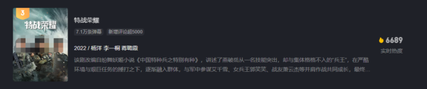 爱奇艺热播电视剧榜单第三名?特战荣耀