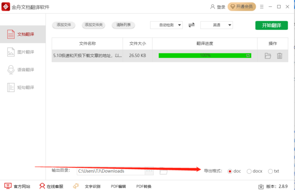 第四步:接下来,在操作界面右下角,是可以选择翻译后导出额文件格式,能够根据需要进行选择勾选。