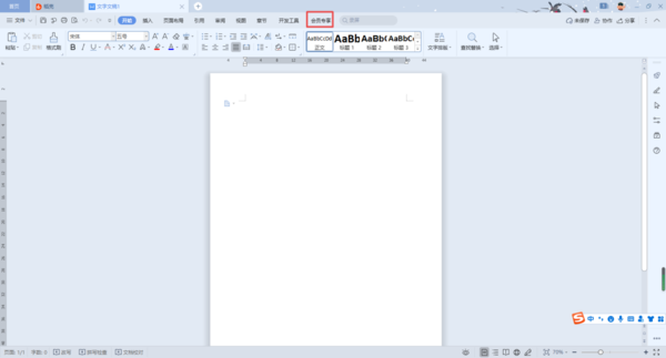 我们在电脑上随意打开一个word、Excel等文档,然后在WPS软件界面的顶部找到【会员专享】选项卡,并点击进入。