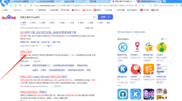 第一步:打开电脑浏览器点击百度搜索网易云音乐客户端的官网,点击链接打开。