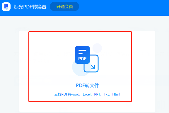 然后接下来打开这个软件,进入烁光PDF的主页面,之后点击【PDF转文件】进入功能页面。