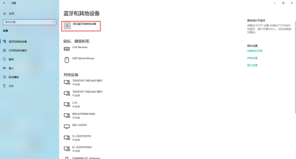 第五步,接着我们在右侧的界面中,找到【添加蓝牙或其他设备】选项,并点击打开。