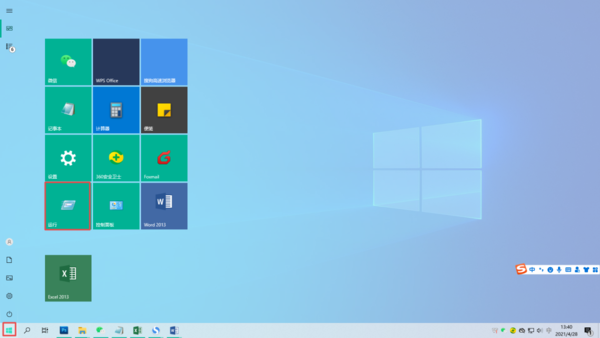 第一步,在电脑的任意界面上,我们按下界面左下角的【开始菜单】图标,然后点击进入,接着在弹出的选项中,找到【运行】选项,并点击进入。或者也可以直接按下键盘上的【Win+R】快捷键来快速调出系统的运行窗口。