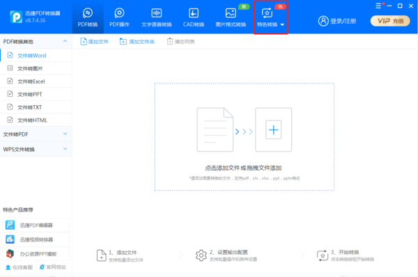 迅捷PDF转换器是一款非常好用的PDF格式转换器,操作步骤也很简单。而且迅捷PDF转换器提供了PDF和数种格式的数十种格式互转功能,也额外拓展了图片识别、语音文字互转和PDF高级编辑等众多功能。功能繁多,能解决很多格式转化问题。