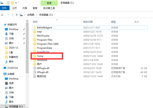 3、?C盘里名字为【temp】的文件夹也是不可删除的,因为这个文件夹里的东西,如果没有必要的话,清理垃圾的时候系统会自动删除,手动删除会有风险。