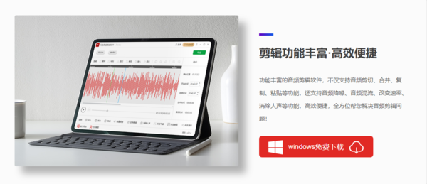 小编要推荐的第一款音频剪辑软件是闪电音频剪辑软件,它是一款多功能的音乐音频编辑软件,简单而且易上手,具有插入音频、添加效果、复制、粘贴等多种编辑功能,同时还支持m4a、wav、amr、ac3、wma、m4r、aac、wv等常见的音视频格式文件,是一款非常适合初级用户使用的音频剪辑工具。