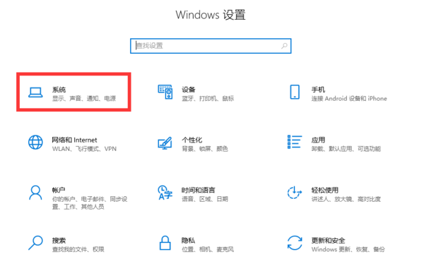 第二步,进入设置页面后,点击选择第一个【系统】选项。