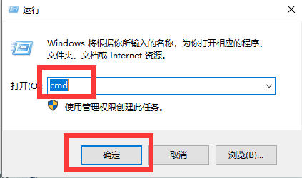 第二步,在运行窗口中的输入框内,写入【cmd】,并确定。
