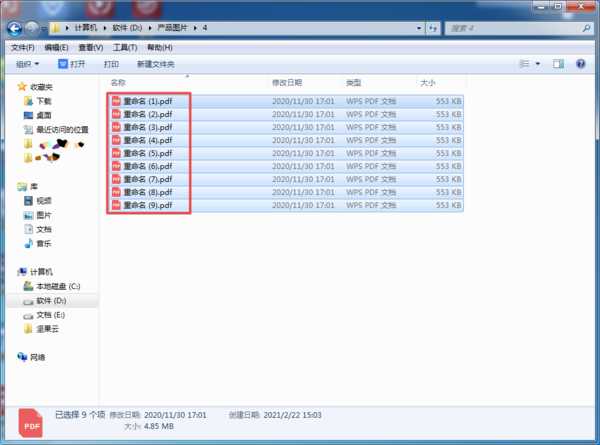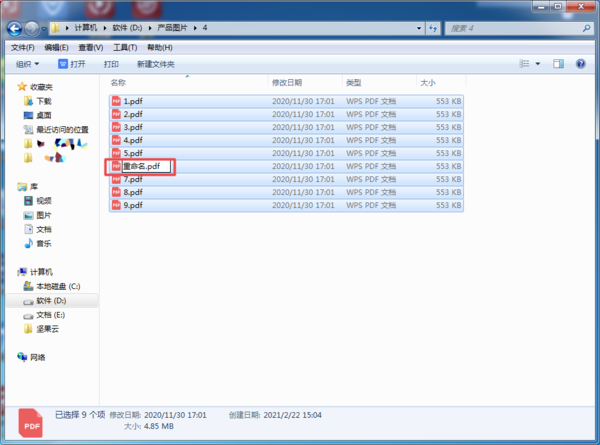 第四步,接着我们在所有文件全部选择的状态下,为一个文件进行重命名,改成自己所需要的名称即可。